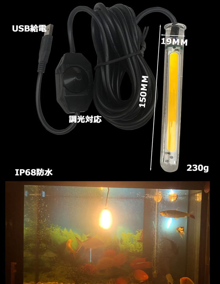 • 本制品は5m、黄金色のUSB式釣り用ライトです