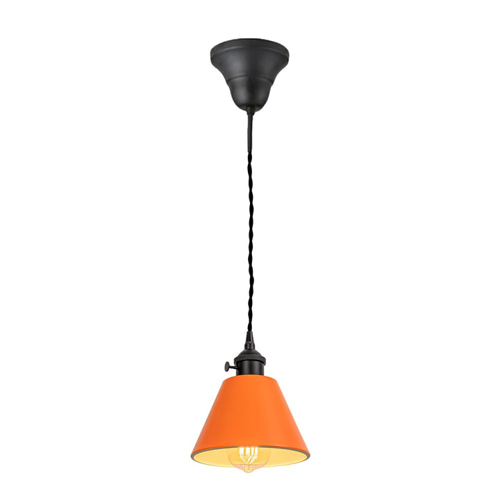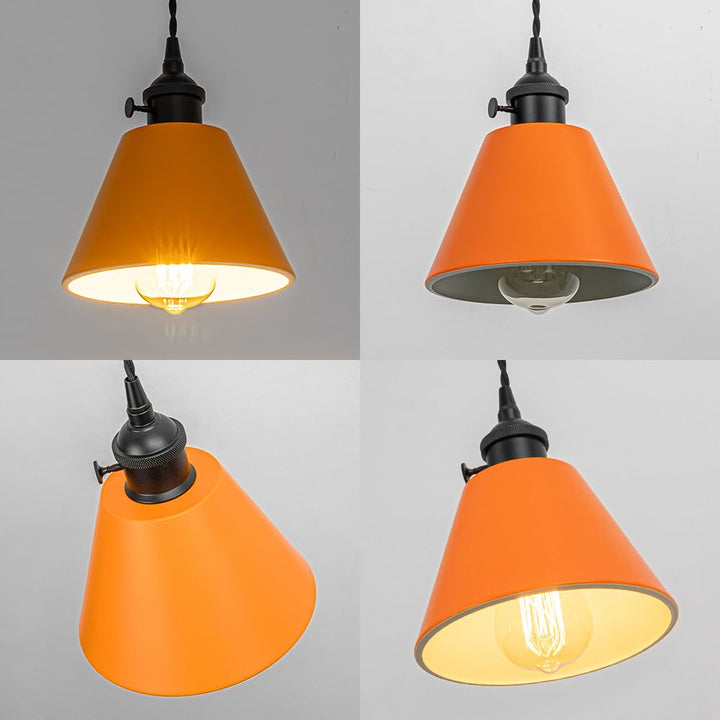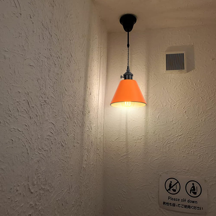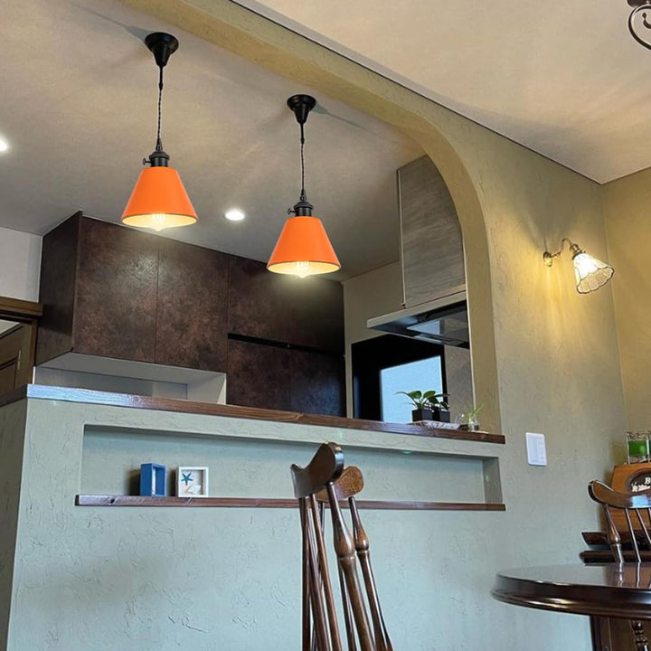 FSLiving ペンダントライト コード長さ100cm 引っ掛け式 調光対応 収納カバー付き 100cm範囲内に調節可 E26対応 電球付属しない インテリアライト 吊り下げライト 玄関照明 客室用 マットブラックソケット 回転スイッチ付き オレンジ色シェード シェード直径17cm