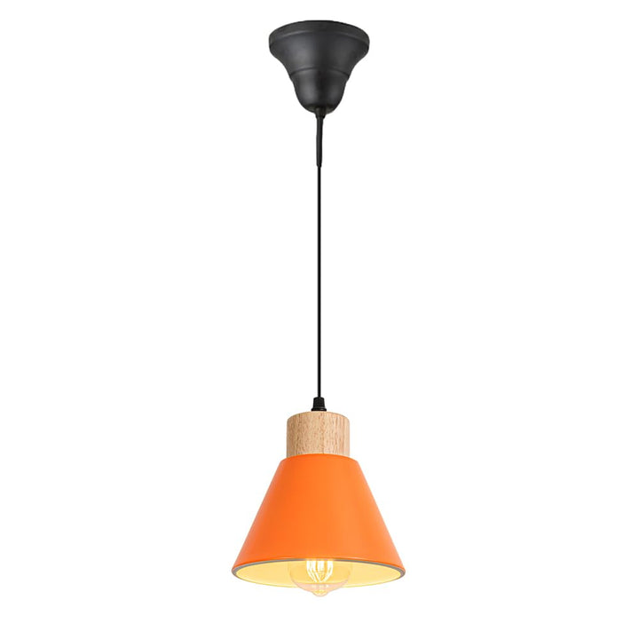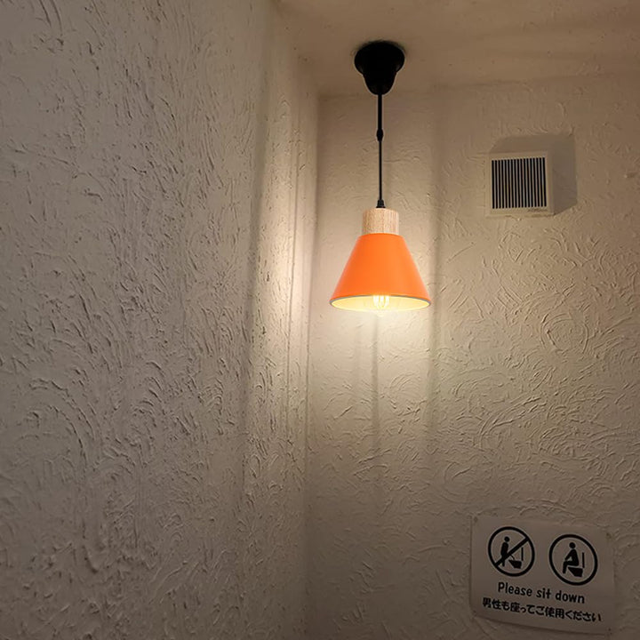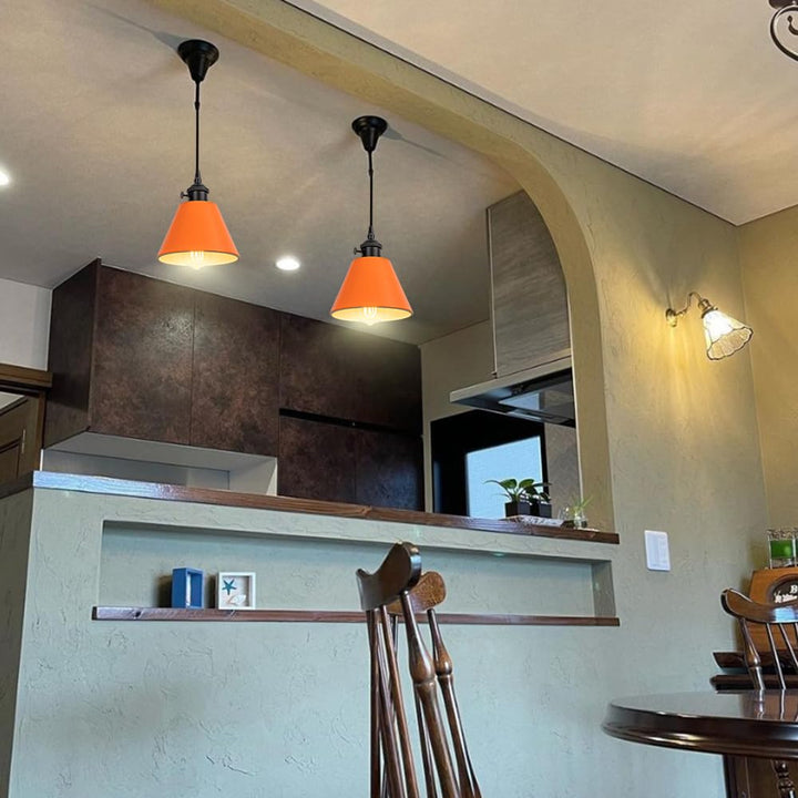 FSLiving ペンダントライト コード長さ100cm 引っ掛け式 調光対応 収納カバー付き 100cm範囲内に調節可 E26対応 電球付属しない インテリアライト 吊り下げライト 玄関照明 客室用 短い原木色ソケット オレンジ色シェード シェード直径17cm