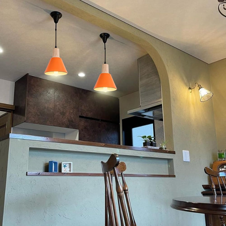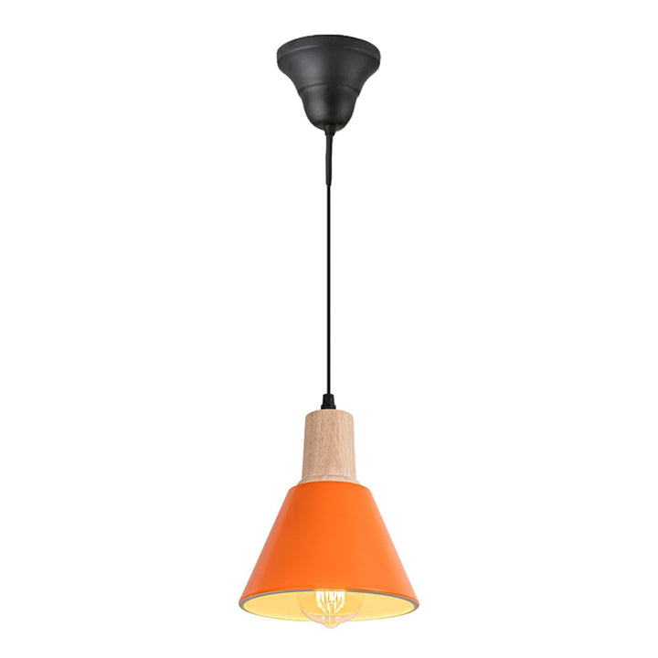 FSLiving ペンダントライト コード長さ100cm 引っ掛け式 調光対応 収納カバー付き 100cm範囲内に調節可 E26対応 電球付属しない インテリアライト 吊り下げライト 玄関照明 客室用 長い原木色ソケット オレンジ色シェード シェード直径17cm