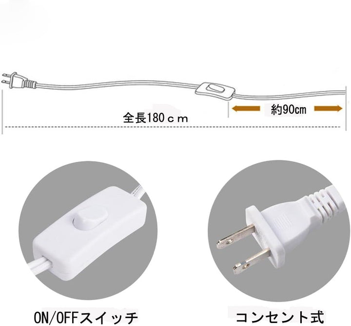 - 【コード(ケーブル)の長さ】:約180cm 【取付方法】:コンセント式、ON/OFFスイッチ付き