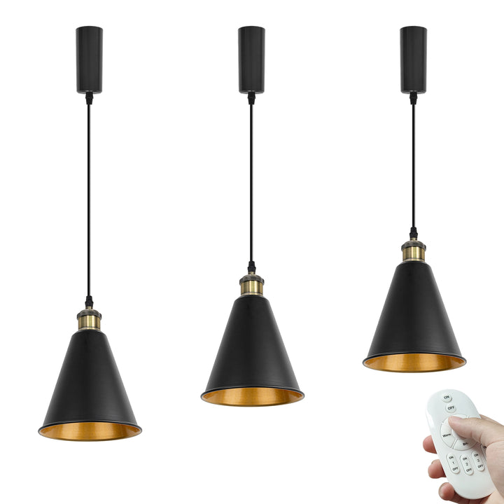 KIVEN 3個入 ペンダントライト 長さ調節可 コード収納カップ付き ダクトレールライト調光調色対応 リモコン付き 色切り替え 電球色/昼光色/自然光 カフェー雰囲気 インテリア照明 北欧 ペンダントランプ おしゃれ インテリア用 照明器具 E26 キッチン 電球付属 ブロンズソケット