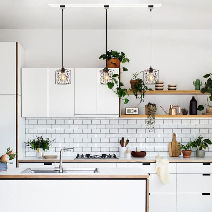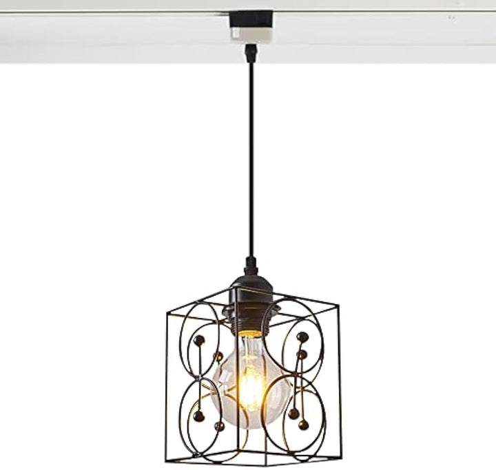 SKIVTGLAMP ペンダントライト 黒いコード(1個セット)1灯 工事不要 ペンダントライト E26口金 ランプシェード ライトパーツ 鉄製 北欧 照明ガード 鳥かご 方形 鍛鉄 産業風 笠 バー レトロ 和風 照明器具 和室 天井 led対応 ブラックソケット 調光対応 照明器具 ブラックシェード カスタマイズ可能,TB0530-VS-YG