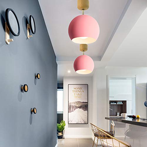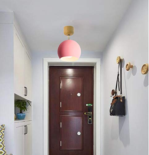 FSLiving シーリングライト 天井照明 玄関照明 ウッドカップ付き E26 LED対応 小型 照明器具 木目 ナチュラル シンプル 天井5畳 洗面所 台所 廊下 玄関 階段用 工事不要 ピンク XDD168-GTS