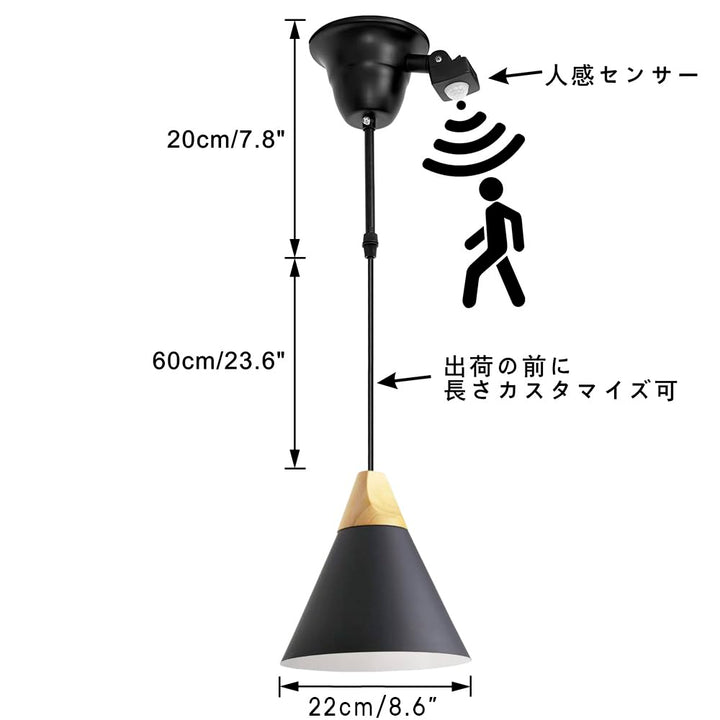 FSLiving ペンダントライト センサー機能 人感センサー ダクトレールライト 取り付け便利 点灯時間調整 トイレ照明 玄関照明 E26口金 省エネルギー 自動的点灯消灯 A1-TBGYGD-831B