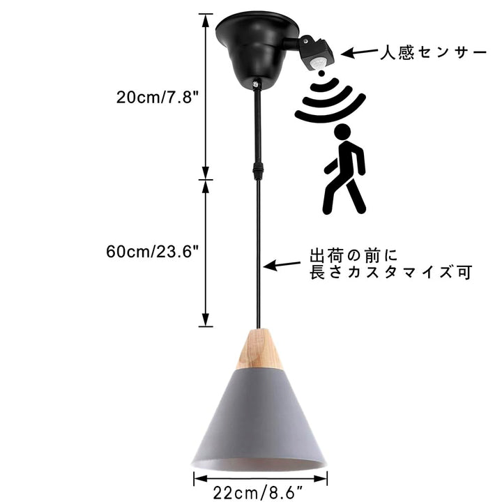 FSLiving ペンダントライト センサー機能 人感センサー ダクトレールライト 取り付け便利 点灯時間調整 トイレ照明 玄関照明 E26口金 省エネルギー 自動的点灯消灯 A1-TBGYGD-831GY