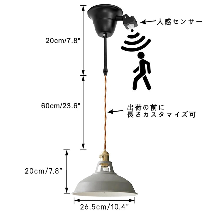 FSLiving ペンダントライト センサー機能 人感センサー ダクトレールライト 取り付け便利 点灯時間調整 トイレ照明 玄関照明 E26口金 省エネルギー 自動的点灯消灯 A1-TBGYGD-P088GY