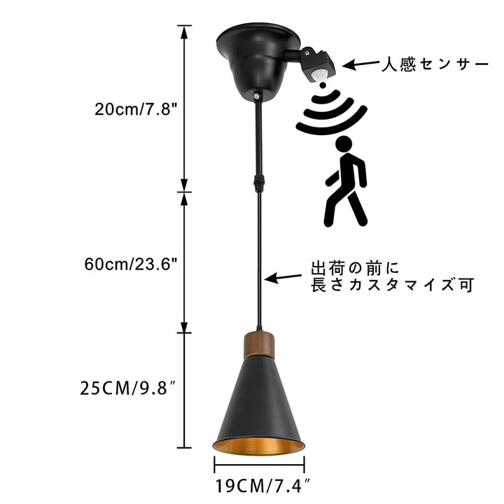 FSLiving ペンダントライト センサー機能 人感センター ダクトレールライト 取り付け便利 点灯時間調整 トイレ照明 玄関照明 E26口金 センサーペンダントライト 省エネルギー 自動的点灯消灯 A1-TBGYGD-HTMDZ19GL