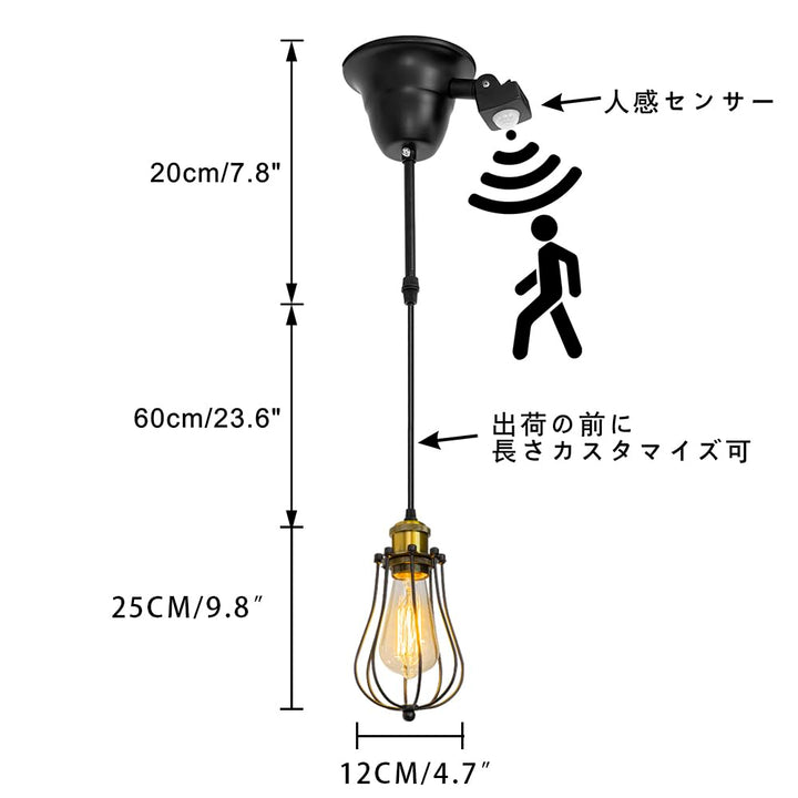FSLiving ペンダントライト センサー機能 人感センター ダクトレールライト 取り付け便利 点灯時間調整 トイレ照明 玄関照明 E26口金 センサーペンダントライト 省エネルギー 自動的点灯消灯 A1-TBGYGD-JGT-DZ12CM