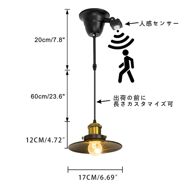 FSLiving ペンダントライト センサー機能 人感センター ダクトレールライト 取り付け便利 点灯時間調整 トイレ照明 玄関照明 E26口金 センサーペンダントライト 省エネルギー 自動的点灯消灯 A1-TBGYGD-JGT-DZ17X3CM