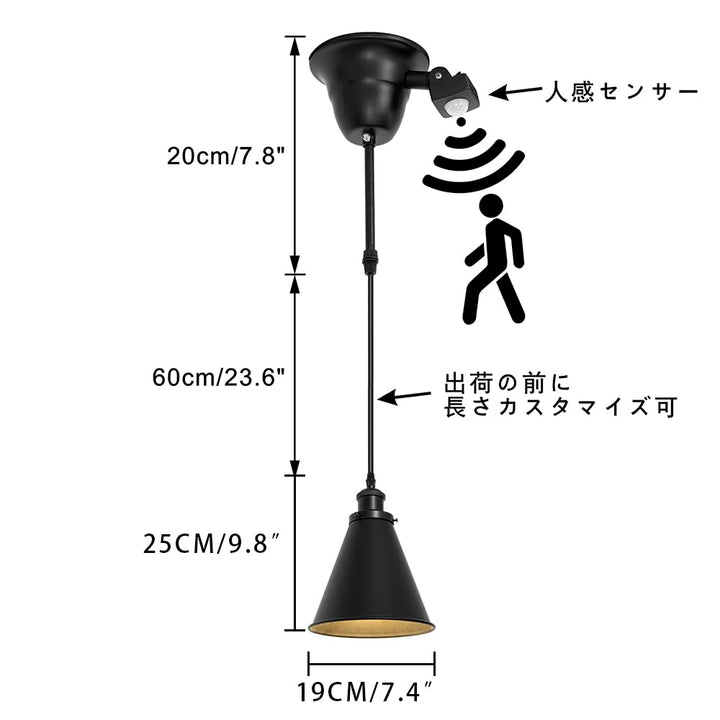 FSLiving ペンダントライト センサー機能 人感センター ダクトレールライト 取り付け便利 点灯時間調整 トイレ照明 玄関照明 E26口金 センサーペンダントライト 省エネルギー 自動的点灯消灯 A1-TBGYGD-YGH-DZ19CM