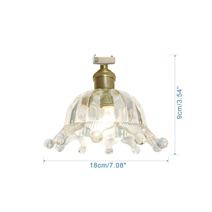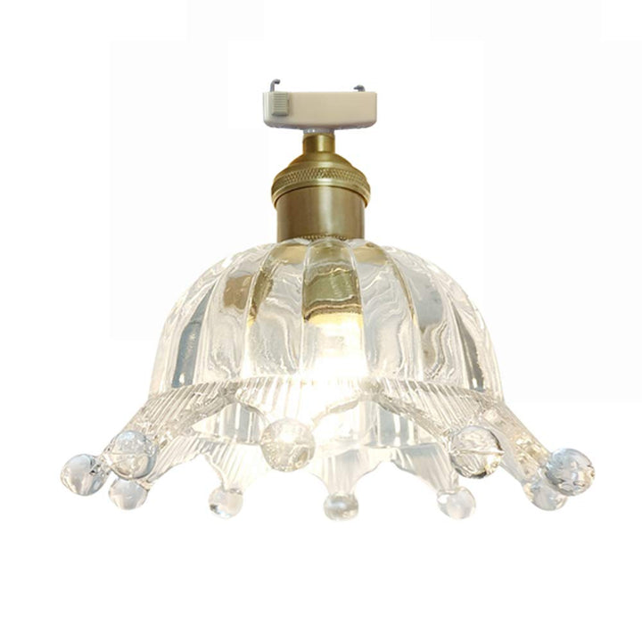 - コロンとした丸いフォルムがキュートな1灯シーリング。カラフルなガラスが特徴です。
