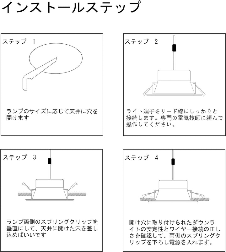- 【ご注意】注設置には電気工事士による施工が必要です。器具本体の指定寸法で天井に穴開けが必要です。施工する天井裏高(器具埋込高)にもご注意ください。