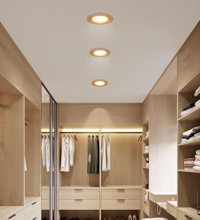 FSLiving 埋め込み式ダウンライト 埋込み型スポットライト かわいい 木製 照明ホルダー 木製 和風和室 埋め込み天井ライト 5W 電球色 ウッド 和室