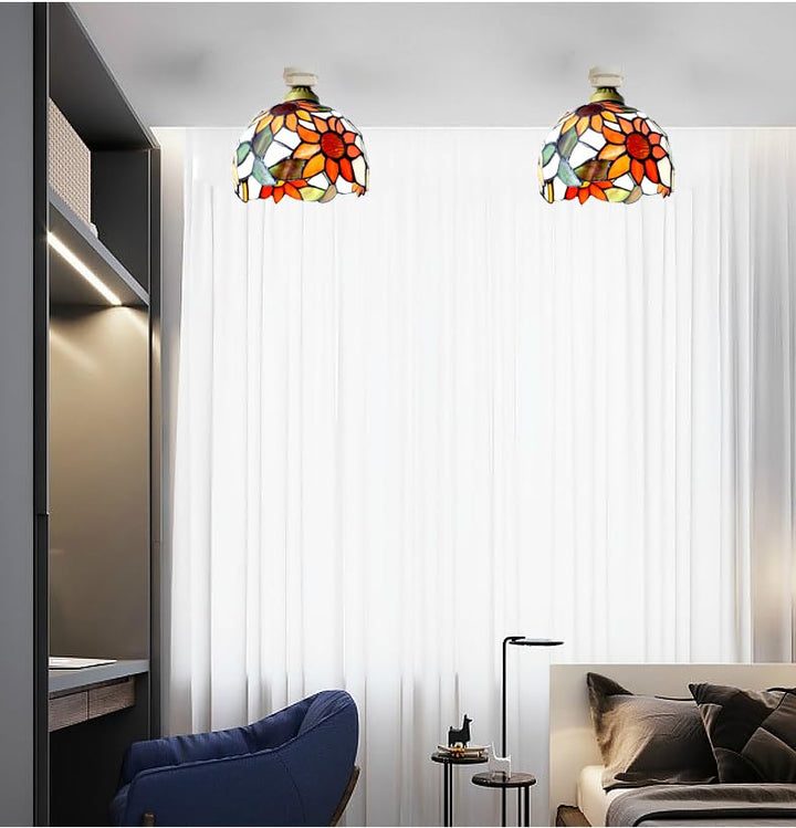 FSLiving 天井照明 ミニシーリングライト 玄関灯 引掛シーリング カラフル 可愛い ひまわり モザイクランプ インテリア照明 ガラスランプ モザイク 照明器具 北欧デザイン おしゃれ 玄関 階段 トイレ アンティーク LED電球対応 E26 電球別売り XDD217-GTS