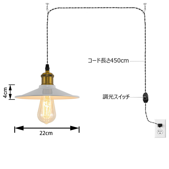 - サイズ:直径22cm*高さ4cm 調光スイッチ付き 取付方法:コンセント式 コード:450cm シェード色:ホワイト 口金:E26(電球付属しない)ご注意:調光対応の電球しか使用できません、適用の電球を使用しないと、チカチカ、点滅、不亮などの状況がおこる恐れがあります。