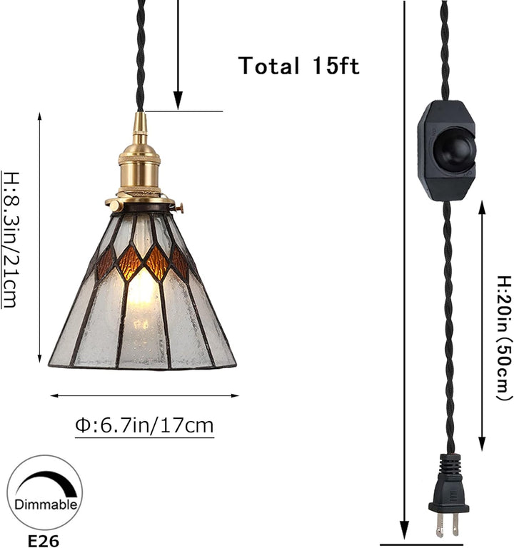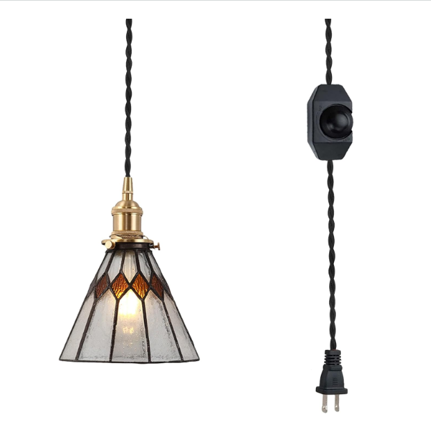 Venus 勾配天井・傾斜天井に コンセント式 ガラス ティファニーライト ペンダント 調光対応 長さ調節可能 可愛い E26 銅製 ソケット ガラスランプ インテリア照明 吊下げ灯 、LED対応 レトロ 4.5M ブラック コード付 調光可 間接照明 田園スタイル 工事不要食卓 リビング 居間 6畳 8畳 廊下 玄関 アイランド キッチン店舗 新築リフォーム カフェ 工事不要 電球は別売り カスタマイズ(茶色)